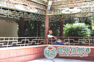 在昆明的很多公园内,都设置了可以供游客休憩的亭子或长廊,游客玩累了,坐在长廊上休憩一番。然而,一些游客不注意自己的举止,将鞋直接脱掉,赤脚踩在供有人坐的长凳上,形象尽毁的同时,也给其他游人造成了不便。而遇到有些脚汗较重的人,发出的脚臭味,让周边的游客纷纷掩鼻。
