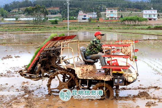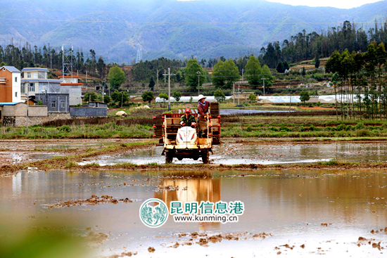 嵩明县牛栏江镇古城村委会机插秧作业现场