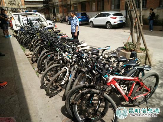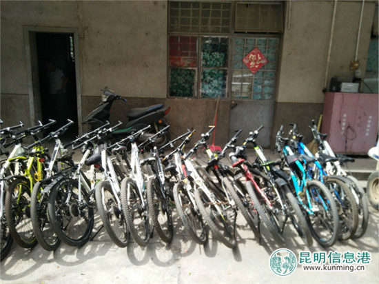 昆明信息港讯·都市时报 记者何惠子 6日下午,永昌派出所民警接到线索:在昆明市西山区永明路53号4栋111室有一个自行车收赃点。