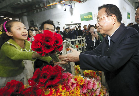 1月24日晚上临近9点,李克强来到斗南花卉市场进行考察 新华社 图