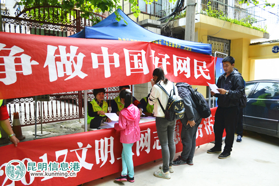 昆明信息港讯 记者袁金桥 5月20日,昆明市“2017年文明上网志愿服务活动”志愿者们来到盘龙区鼓楼街道办交三桥社区,面对面向居民讲解安全、健康、文明上网的知识。