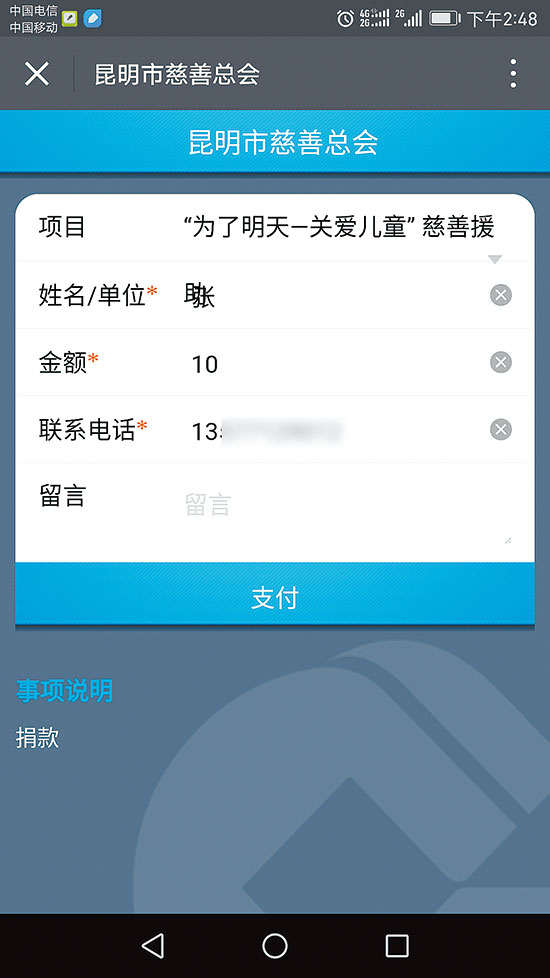 1、关注公众号“昆明市慈善总会”