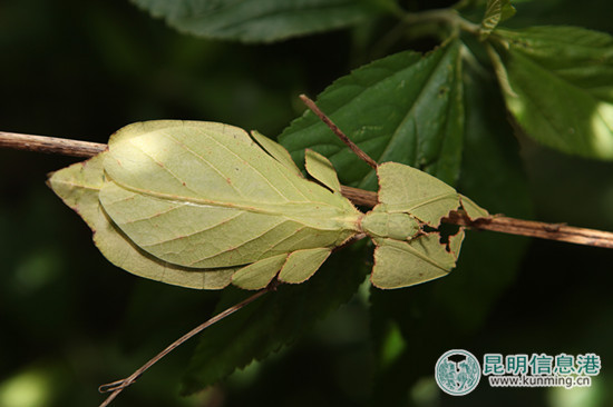 昆明信息港讯 记者赵艳芳 通讯员陶平 毛雪兰 5月24日,一只长相独特,外形极度酷似树叶的虫子出现在云南普洱小熊猫庄园。经专家鉴定,该虫子是滇叶䗛,是自然界的“伪装大师”,数量十分稀少。