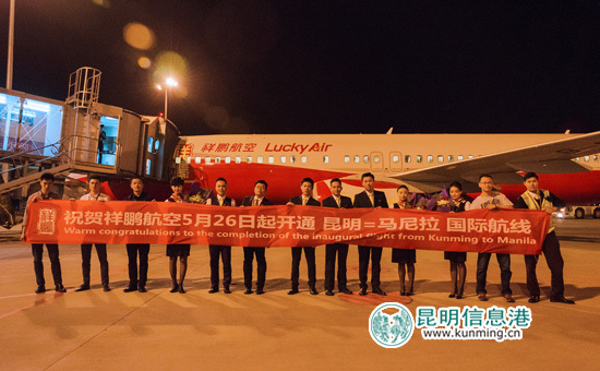 昆明信息港讯 记者上官艳君 5月26日,记者从祥鹏航空获悉,由昆明直飞马尼拉的8L9583航班顺利抵达马尼拉国际机场,标志着祥鹏航空昆明-马尼拉正式开通。这是首条由昆明直飞菲律宾首都马尼拉的航线。
