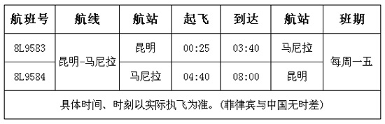 昆明至菲律宾首都马尼拉直飞航线5月26日开通