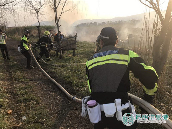 获悉情况后,正在附近执勤的昆明市公安局支队交警八大队骑警立即驱车赶赴现场,协同村民、消防官兵开展扑火,经过警民携手处置,到当天晚上20时许,险情消除。