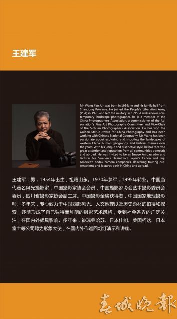 此次摄影展将展出两位摄影师的60幅作品,一位摄影师是中国著名风光摄影师王建军,一直致力于拍摄美国国家公园风光,另一位摄影师来自美国,专注于拍摄中国西部的自然风光及野生动物。希望藉由本次影展,可以吸引更多的中国游客前往美国旅游,同时更多的美国游客来中国西部尤其是云南省旅游。值得广大摄影爱好者关注的是,开幕式结束后, 当日13:30 至15:00 中国著名摄影师王建军将举办分享会,跟摄影爱好者分享在美国国家公园的故事、拍摄风景的特别技巧、学习摄影的经历等。(记者李超 陆橙 文 美国驻成都总领事馆新闻文化处 供图)