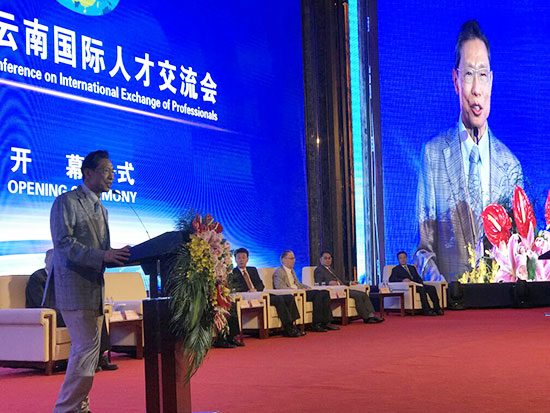 他表示,云南热忱欢迎各类人才前来创造新业绩、开辟新天地;热忱欢迎国外专家组织、专业协会、科研机构、高等院校加强与云南各个领域的交流与合作;热忱欢迎国内外引智机构充分发挥专业优势,以各种方式参与云南人才引进和建设;热忱欢迎与会嘉宾发表真知灼见,为云南的跨越发展建言献策,推动云南人才国际交流向更高层次、更宽领域发展。