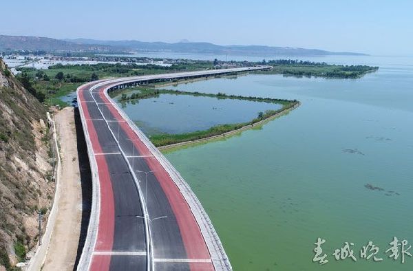9日,晚报记者在施工现场看到,走在这条位于滇池南岸的临水景观路上,可将滇池美景尽收眼底。
