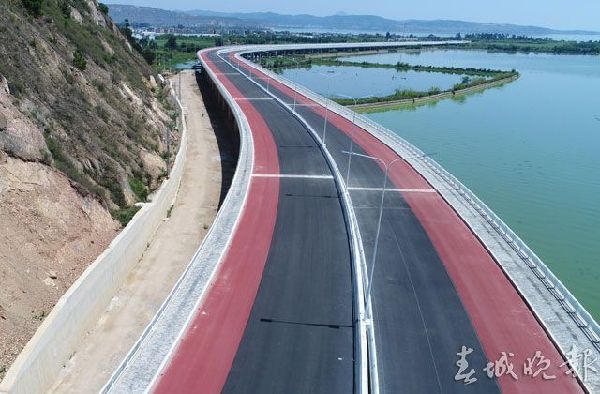 在景观方面,环湖南路提升改造工程靠近滇池一侧桥面比靠路一侧平均低1.2米,可以保障双向车道都可无障碍观赏湖景。这条双向4车道的景观路还专门设计了骑行道和慢行步道。运动过程中,11公里多的滨水景观可任意停下拍照。该标段最末端还设计了长300米的停车观景带,供大家短暂停车观景。在各标段将陆续验收、交付之后,预计年内可全面竣工通车。