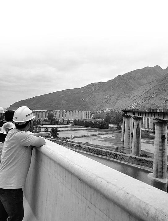 对面的山上,自上而下有两条狭长的灰土带,没有任何植被与周围明显不同。“这里前两天一直在下雨,刚刚度过了一个小汛期。”张锐说,雨季时,大白河水位一天最高能涨1.5米,这个时候往往不能施工。鉴于此,他们在汛期前都会做足安全措施,比如,对河道清淤,在河道两侧加装安全挡板。“省安监局等上级管理部门对我们的安全工作一直很重视,常常来检查各项安全措施是否到位。我们从去年1月进场施工,到目前为止还没有发生过安全事故。”