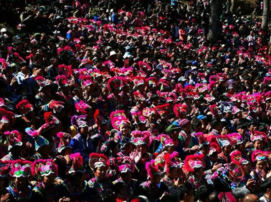 村口山坡上一块临时开辟的空地上人山人海,一片欢乐和彩装的海洋。直苴村及附近的彝族群众,盛装打扮,把本民族最靓丽的服装原汁原味地展现在世人面前。