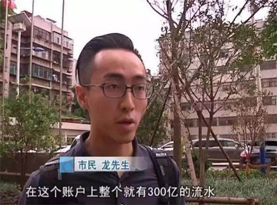 最近,昆明小伙龙先生就遇到了这样的事!他说,“我就是一个普普通通的小老百姓,突然多了个300亿流水的银行账户,我觉得我很无辜……”