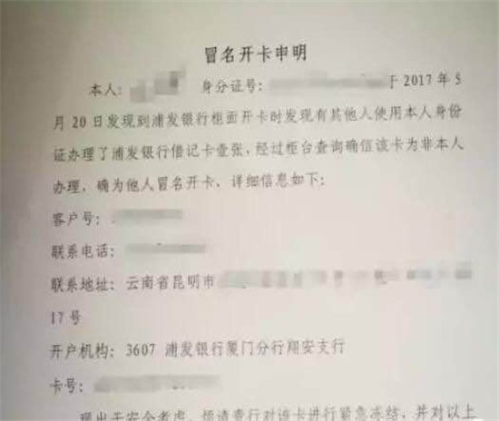 所幸,经银行核实,这张银行卡确系他人盗用龙先生的身份信息,昆明支行随即挂失冻结了该账户。