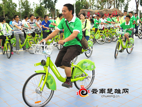 6月24日上午,迎着习习晨风,楚雄市公共自行车投放仪式暨“绿色出行 健康生活”骑行活动在彝海公园举行,楚雄市首批1000辆公共自行车投入城区50个租赁站点,300余人参加了当天的活动,用实际行动践行提升城乡人居环境行动,倡导绿色出行,健康生活。