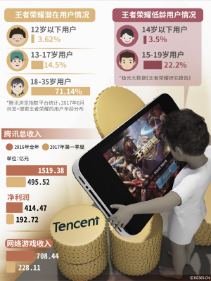 盛名之下,这款被调侃为“王者农药”的国民游戏由于大量未成年玩家沉迷其中也被批评“有毒”,负面新闻频发:“小学生用妈妈手机玩王者花费4万多”、“尖子生因手机被没收从4楼跳下,苏醒后第一件事是要求打王者”……