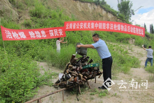 临沧集中销毁129支非法民用枪支及过期炸药295公斤
