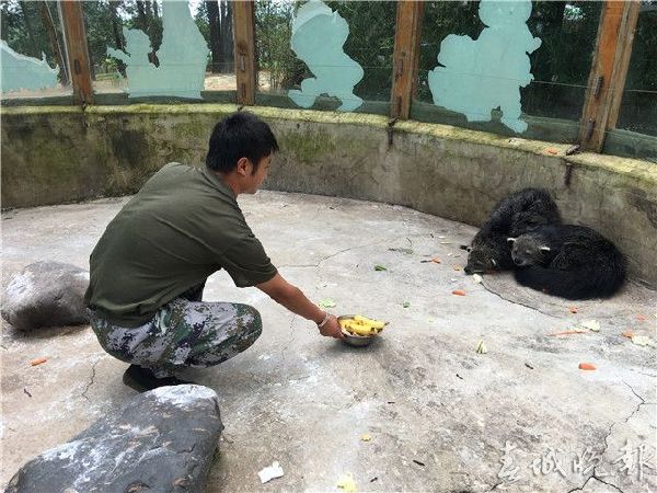 赵师傅还说:“我发现熊狸已经学会吃香蕉了,‘吃香蕉’并非一般动物的吃香蕉,而是剥皮吃香蕉。熊狸们吃香蕉都会咬破后只吃果实。”