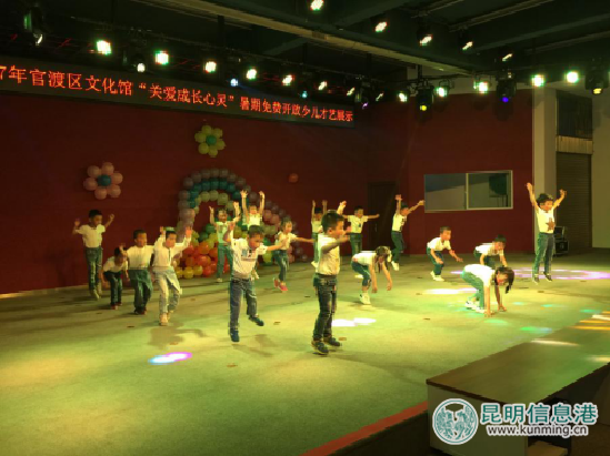 昆明信息港讯 通讯员刘兴 为弘扬中华民族传统优秀文化,贯彻落实未成年人思想道德建设实施纲要,充分发挥好官渡区公共文化服务阵地的职责职能,同时结合创建全国文明城市工作,围绕弘扬和践行社会主义核心价值观,深化“我的中国梦”主题教育,2017年7月28日晚7点,官渡区文化馆成功举办了以“关爱成长心灵,播种灿烂明天”为主题的“关爱成长心灵”暑期免费开放少儿才艺展示活动。