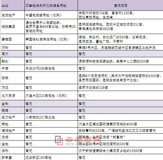 除了以上有存粮的房企外,昆明大部分房企手中已没有严格意义上的土地储备,包括一线的万科、恒大、保利、招商、绿地、金科等,就目前公开的情况来看,有些大房企不仅没有存地,连意向接盘或签约合作的项目都没有,只有靠着目前在开发项目“维持生计”。