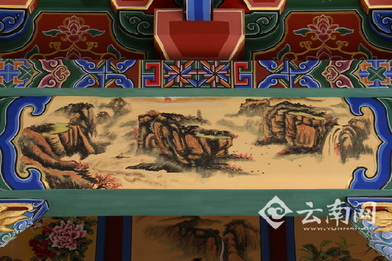 文庙内披上彩绘图案的横梁。 云南网实习生 李雄伟/摄
