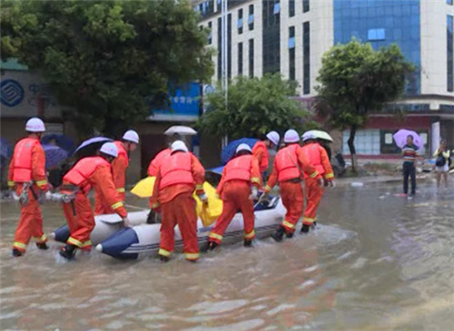 西畴县西洒城区金玉路、人民路严重积水,交通通行困难。消防部门展开紧急救援,现场搜救附近被困居民,并输送被困人员至安全地方。