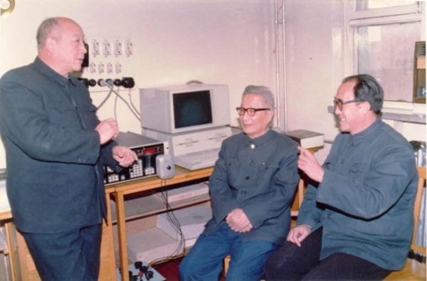 魏寿昆(中)、柯俊(左)、肖纪美(右)三位院士经常在一起探讨问题。(资料图片)