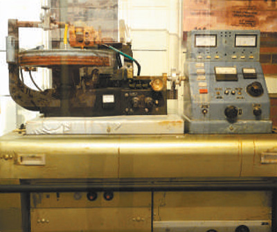 上海国歌展示馆内收藏的灌制首版《义勇军进行曲》唱片的刻录机。资料图片