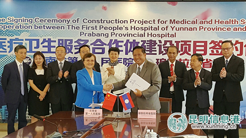 昆明信息港讯 记者甘凌菲 据悉,近日中国与老挝医疗卫生服务合作体建设项目在昆明举行签约仪式,云南省第一人民医院将与老挝琅勃拉邦省医院将在医护质量管控、优势学科,结对帮扶、医疗骨干培训等领域开展为期三年的合作。