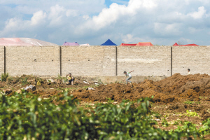 吵吵嚷嚷的市场围起了高墙,孩子们在墙外玩耍