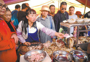 羊肉、豌豆粉、凉米线,这些乡土美食深受赶街人喜爱