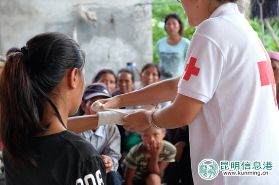 昆明信息港讯 记者张子源 为进一步弘扬“人道、博爱、奉献”的红十字精神,并让不会听讲汉语的少数民族群众了解红十字文化,学习应急救护知识,9月29日,云南省红十字会事业发展部联合耿马县红十字会走进耿马县孟定镇邱山村三组,用生动形象的文艺形式开展红十字文化宣传和应急救护技能培训,300多拉祜族群众参加了活动。在国庆中秋到来之际,红十字会还为村民带去衣服、鞋子等价值43200元的生活必需品。