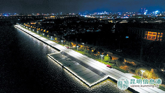 提升改造后的草海大堤夜景迷人。记者周密摄