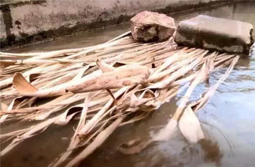 将晒干后储存备用的干构皮置于凉水中,浸泡至构皮完全发软为止。