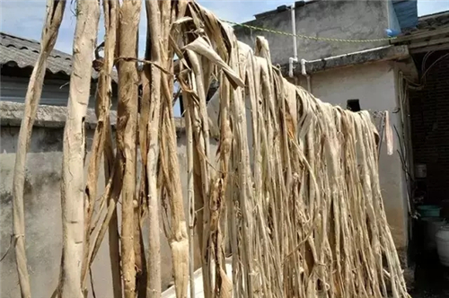 采好的鲜料不能直接煮,否则造出的纸不白。必须将采剥来的构树皮挂在太阳下暴晒,晒干后储存备用。