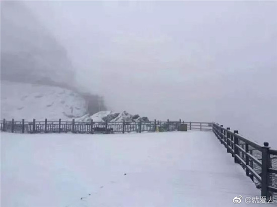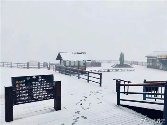 丽江玉龙雪山冰川公园索道因开展索道设备定期检查、维护保养工作,于2017年10月15日至10月21日停运7天。22日索道开通后,一大早上山就发现下雪了。
