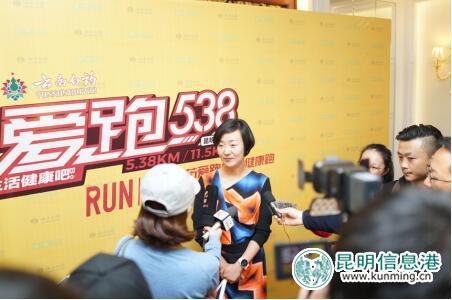 云南白药以“跑步”的方式向社会传递健康理念和生活方式,将“爱跑538”打造成集流行、健康、正能量为一体的赛事活动,给现代忙碌的都市人们更多参与锻炼的机会,将“爱跑538” 打造成为唤醒大众健康,与跑者、大众健康良性互动的桥梁。“‘ 爱跑538’不仅仅是一场跑步比赛,我们更想通过这种方式将更多追求健康的人群聚集起来。无论是跑步达人还是普通市民,都可在这5.38公里中感受到跑步乐趣、感受运动魅力。这是一场健康、快乐的赛事,我们还在跑步过程中设置了很多有趣的环节,有的是和美食有关、有的是与昆明的历史文化有关,大家都可以带着家人一起来体验。”云南白药集团股份有限公司药品事业部政府事务部总监、药品事业部市场推广部副总经理谢雨珂接受采访时表示。