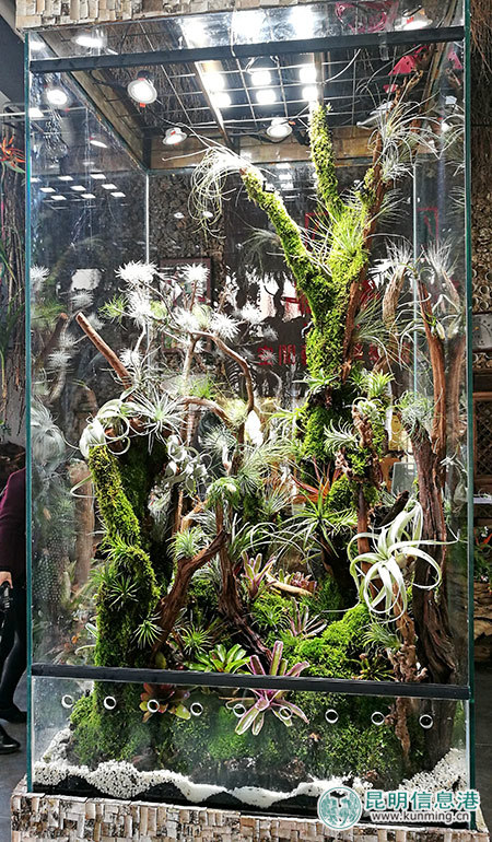 以小型生态循环系统构建的绿色植被景观——生态缸。