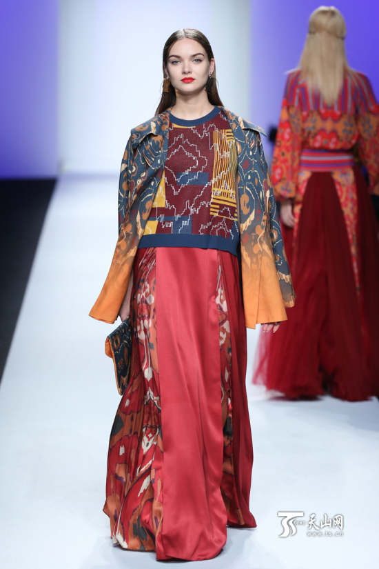 当天,三位全国十佳服装设计师孙秀琴、程应奋、陶陶,以及新疆设计师迪拉娜 · 扎克尔凭借对艾德莱斯的专注研究创作,带来了一系列融合设计与市场、民族与世界的原创作品。在模特的演绎下,走出天山的艾德莱斯时装为本届中国国际时装周带来了美丽生动的新疆表情。