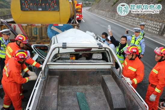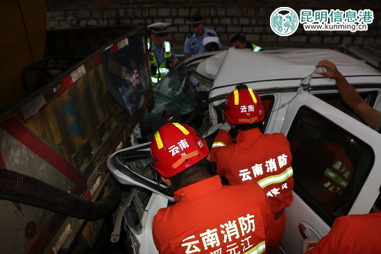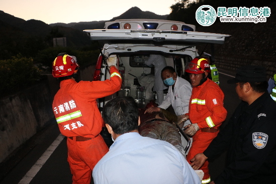 昆明信息港讯 实习记者劳学丽 通讯员刘昊 11月13日下午,玉溪市元江县公安消防大队接到报警称,昆墨高速(下行线)红光收费站往墨江方向3公里处发生交通事故,1人被困。接警后,玉溪市元江公安消防大队立即出动2车10人赶赴现场进行救援。