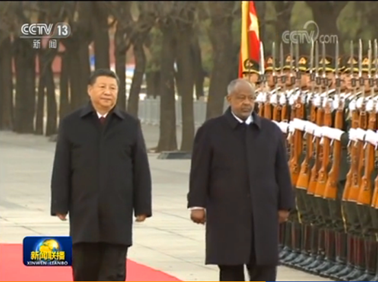 国家主席习近平23日下午在人民大会堂东门外广场举行仪式,欢迎吉布提共和国总统伊斯梅尔·奥马尔·盖莱对我国进行国事访问。