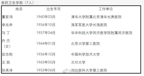 新当选的67名院士中,男性63人,占94%;女性4人,占6%。