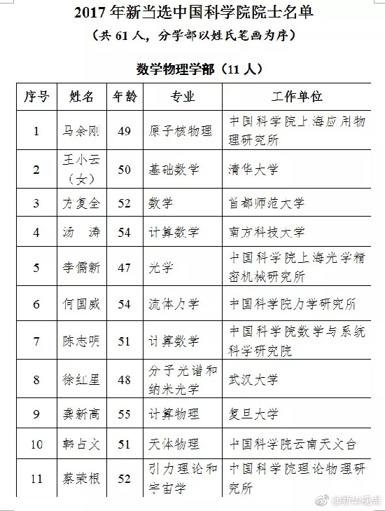 今天(11月28日),两年一度的中国科学院院士增选结果公布。