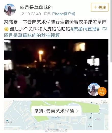 你以为只有丽江的小伙伴看到流星雨? NO!NO!NO! 昨晚很多昆明人也看到了!而且尖叫声划破天际,真奔宇宙……
