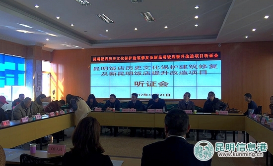 昆明信息港讯 记者李莹 12月21日下午,盘龙区人民政府拓东街道办事处组织召开《昆明饭店历史文化保护建筑修复和新昆明饭店提升改造项目》(以下简称《改造项目》)市民听证会。《改造项目》提出,将用三年时间,打造昆明市区域性国际中心核心城区新地标之一。新饭店拟2020年开业,届时,将建成五星级酒店、5A甲级写字楼、综合商业体。在听取报告并充分讨论后,所有听证代表同意并表示支持该项目实施。