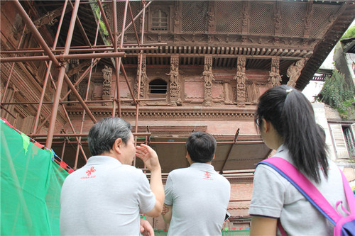 作为尼泊尔首都加德满都杜巴广场的标志建筑之一,“九层神庙”已被列入世界文化遗产。遗憾的是,两年前的一场强震,导致了该庙上面两层震塌。今年8月,中国政府开始援助“九层神庙”震后修复,这也是中国在尼首个大规模文物援外项目。“对它修复、保护兼具文物保护与促进当地民生的双重意义。”国家文物局办公室(外事联络司)主任解冰说。