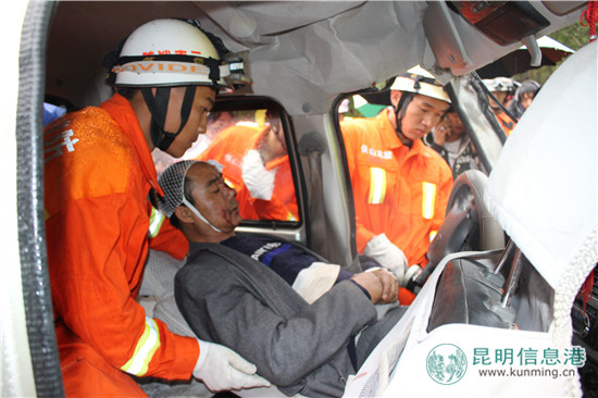 昆明信息港讯 实习记者劳学丽 通讯员殷英 段春贵 1月2日17时00分,保山市龙陵县公安消防大队值班室接到群众报警称,位于龙陵县镇安镇发生一起交通事故,造成1人被困,接警后,大队立即出动2车10人赶赴现场施救。