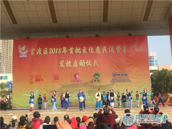 昆明信息港讯 记者徐毅杰 1月9日,官渡区2018年首批文化惠民消费券发放启动仪式在官渡广场举行,当天,700余名市民获赠一套价值50元的官渡区文化惠民消费券。