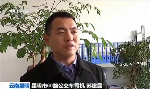 监控画面显示,1月8日下午三点左右,苏建昆驾驶昆明市60路公交车到达一站台后,在等候乘客上下车时,发现了一名杵着拐杖的老人上车十分费劲。苏师傅停好车后,赶紧解开安全带下车去帮忙,将老人抱上了车。