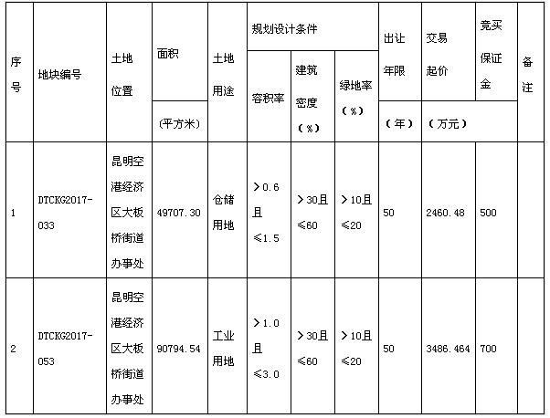 昆明空港经济区大板桥街道两宗地块挂牌交易